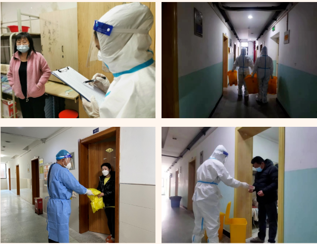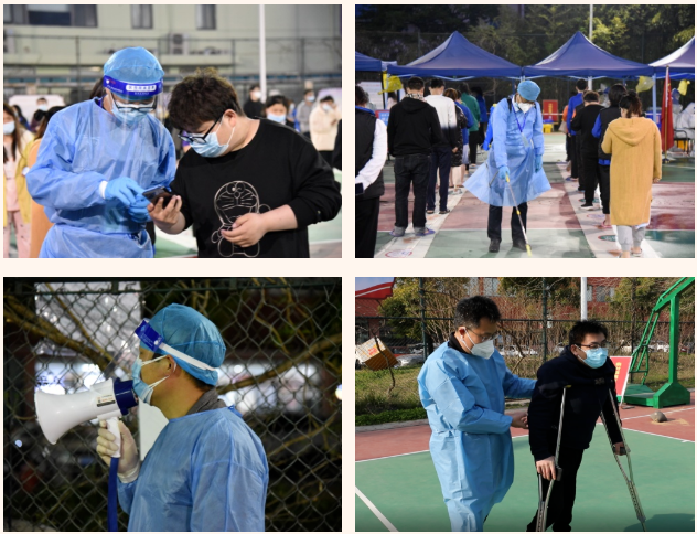 在這個(gè)集宿區(qū)內(nèi),有一群人奮戰(zhàn)在抗疫最前線。大白小藍(lán)是他們最矚目的通行證工作證,他們身份多樣,上演著超級(jí)“變、變、變”,他們既是細(xì)致入微的醫(yī)生助手,也是發(fā)放物資的大力水手,還是現(xiàn)場保障的行家里手。