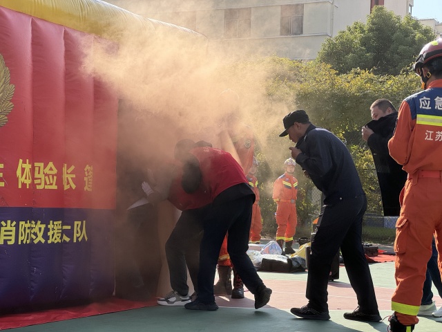 活動中,園區(qū)消防大隊工作人員和公司消防志愿者向現(xiàn)場員工發(fā)放消防安全常識二十條宣傳單,細致介紹了各類滅火救援器材的使用方法和初期火災(zāi)處置、火場逃生自救等消防安全知識?;顒蝇F(xiàn)場設(shè)置了火場逃生和火災(zāi)處置等模擬場景,參加活動的員工積極體驗,主動提升自身應(yīng)對火災(zāi)的能力。
