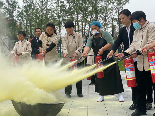 在活動現(xiàn)場,安全員向參與人員講解了如何正確使用滅火器方法和技能,總結(jié)了“提、拔、握、壓”四個(gè)步驟,并進(jìn)行了使用方法的演示。保安、保潔人員輪流進(jìn)行實(shí)際操作,逐步掌握滅火器的使用方法。