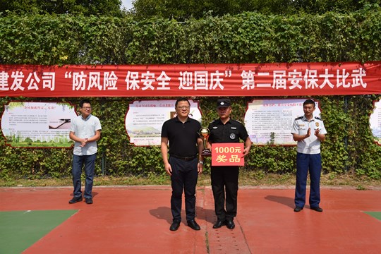 為了提升安保隊(duì)伍整體精神面貌,加強(qiáng)突發(fā)性事件快速反應(yīng)能力和聯(lián)合應(yīng)急處置能力,提高安保隊(duì)伍的安全意識(shí)和消防技能,切實(shí)保障職工的生命財(cái)產(chǎn)安全。9月23日,建發(fā)公司舉辦第二屆“防風(fēng)險(xiǎn)保安全迎國(guó)慶”安保大比武活動(dòng)。開(kāi)發(fā)公司財(cái)務(wù)總監(jiān)黃健、園區(qū)消防大隊(duì)大隊(duì)長(zhǎng)石峰、建發(fā)公司副總經(jīng)理倪松出席活動(dòng)并講話。